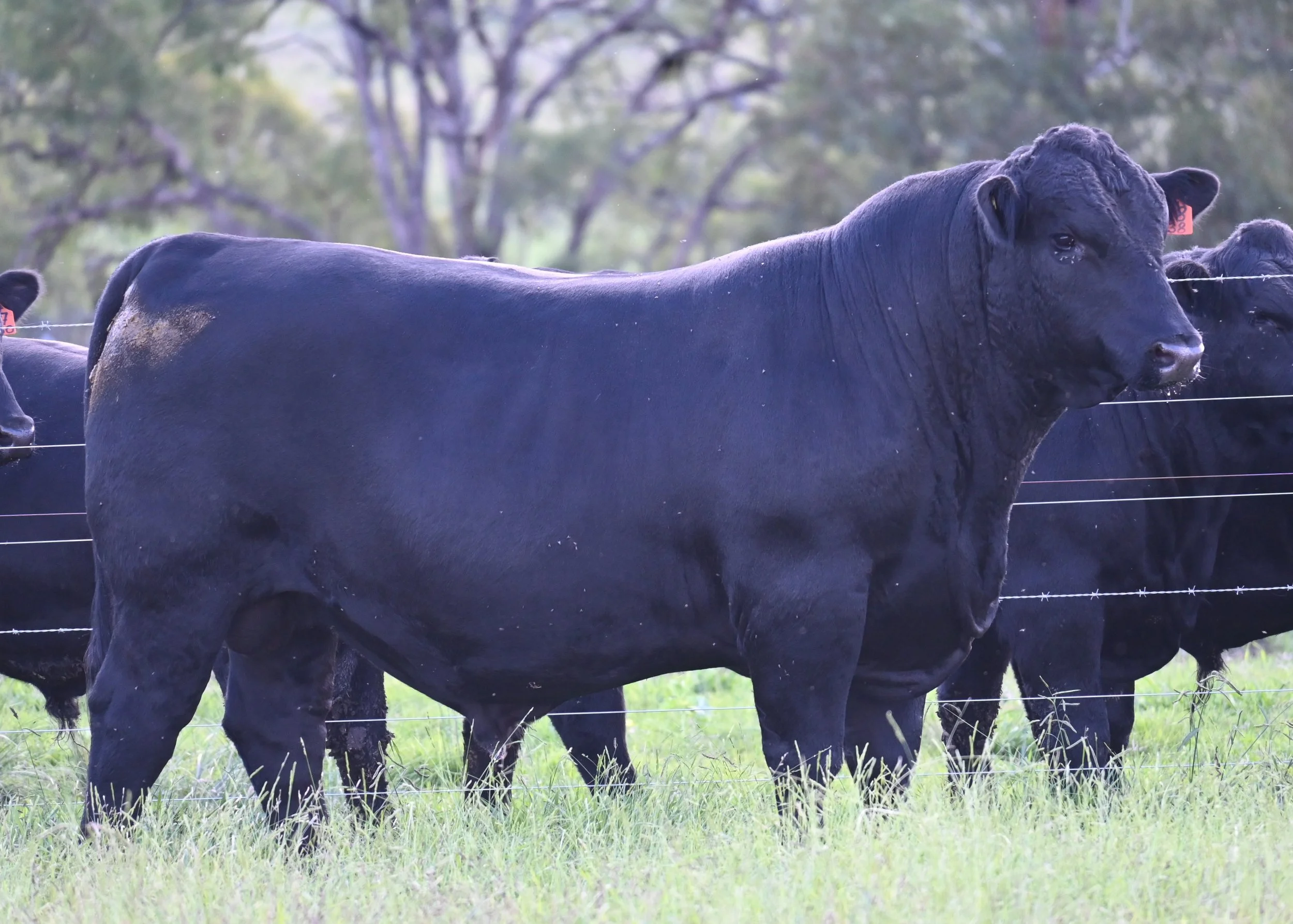 The scale-breaker of the draft, U8 has been the powerhouse bull all his life. If you look at his data it's an accurate reflection until you look at his EMA. In the flesh he has enormous spring of rib and tremendous depth of body. If you're producing feeder steers then this bull will get them on the truck quickly. Top 1% IMF and high indexing all the way. He has a full flush brother at Lot 9 who is just as powerful. His dam's first calf made $8000 in our 2024 sale.